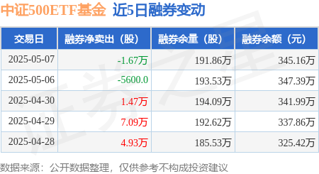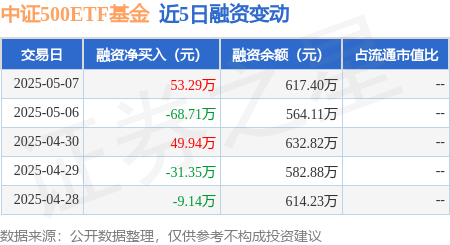 本站消息,5月7日,中证500ETF基金(510510)融资买入170.29万元,融资偿还117.01万元,融资净买入53.29万元,融资余额617.4万元。